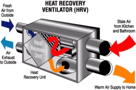 A: A heat recovery system works by recovering heat from the stale air leaving your home and transferring it to the fresh air coming in. This process is done through a heat recovery ventilator (HRV), which uses a heat exchanger to exchange heat between the two air streams. By recovering heat from the exhaust air, the HRV can pre-heat or pre-cool the incoming fresh air, reducing the need for excessive heating or cooling and saving energy.